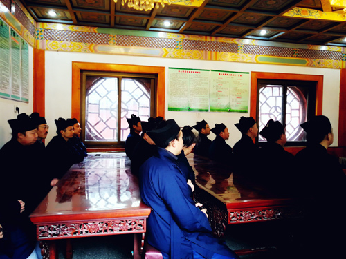 道众们聚精会神学习了习近平总书记代表十八届中央委员会作的工作报告,为中国共产党带领全国各族人民取得的极不平凡的成就感到欢欣和鼓舞。
