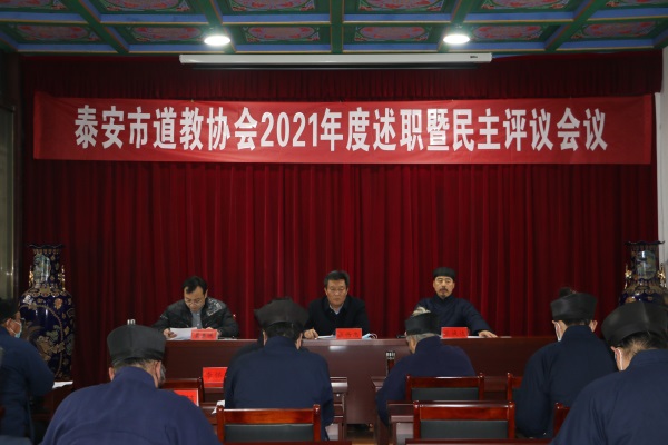 2022年1月12日,泰安市道教协会召开班子成员2021年度述职暨民主评议会议。市委统战部二级调研员张西忠出席会议,市道教协会会长张诚达道长及班子成员、理事以上人员参加会议。